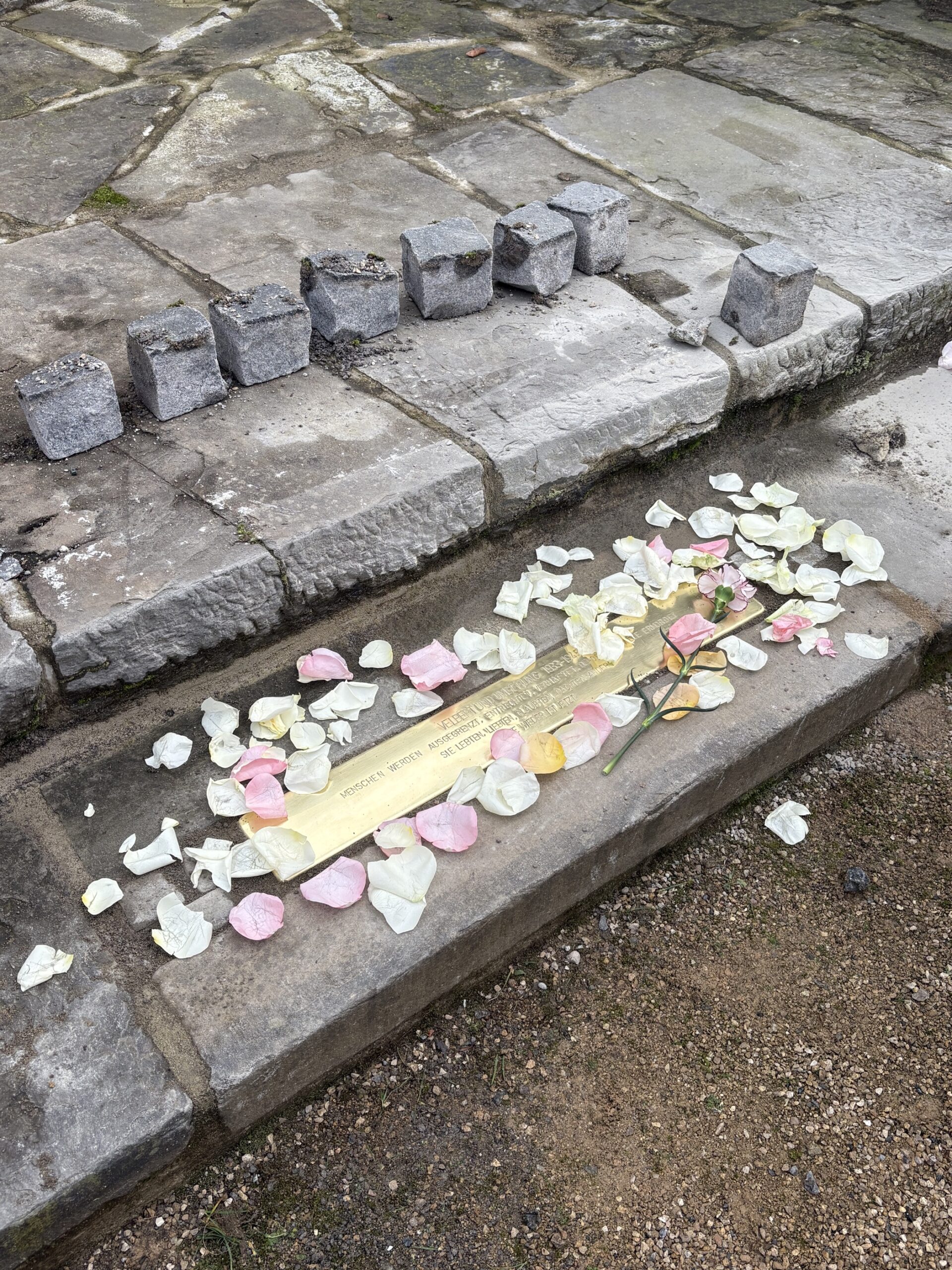 Diese Stolpersteine und die Stolperschwelle erinnern an die Opfer des Nationalsozialismus und laden zum Innehalten, Gedenken und Nachdenken ein. Für die Schülerinnen und Schüler bot sich so die Möglichkeit, Erinnerungskultur unmittelbar vor Ort zu erleben und ein Stück lokaler Geschichte lebendig zu erfahren.